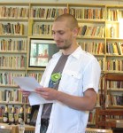Jonas håller tal för de cirka 30 gästerna som deltog på hans 30års festen.