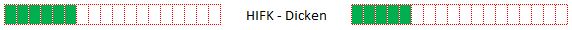Seuraavassa kuvassa näemme viivoina tehdyt maalit sarjaotteluissa ja palkkeina päästetyt maalit. HIFK siis pelannut yhden pelin enemmän jnka takia Dickeniltä puuttuu yhden ottelun verran tuloksia. Kuva aukeaa suuremmaksi klikkaamalla.