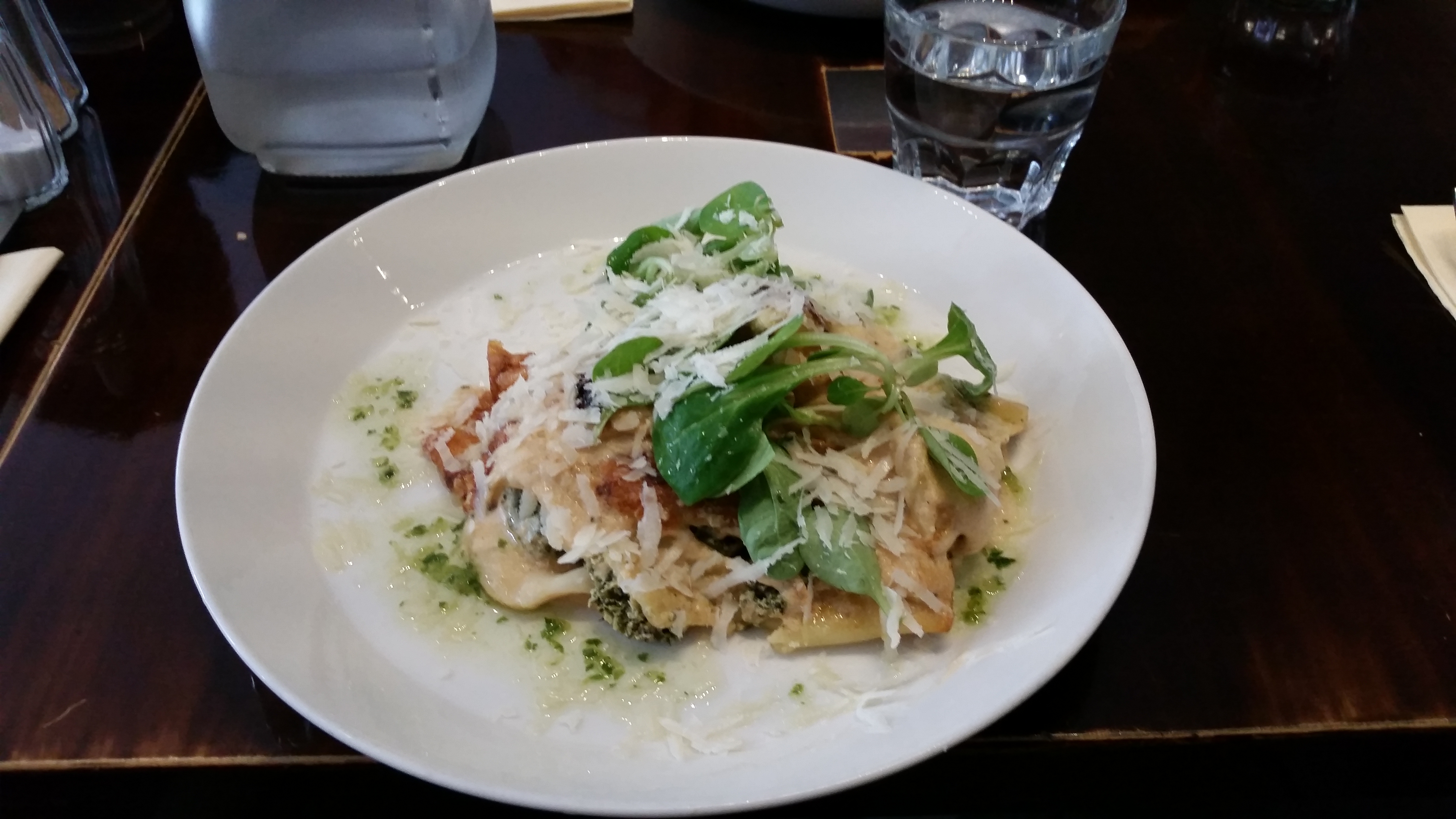 Henkilökuntana ravintolapuolella toimi 2 reipasta kaveria jotka oli todella ystävällisiä ja tehokkaita. Ruoka tuli sopivan nopeasti joten ruokaa ei tarvinnut odottaa liiaksi, ja tilaamani Pinaatti- ja ricottajuustotäytteiset canneloonit osoittautui loistavaksi päätökseksi. Pinaatin maku oli pehmeä mutta nousi esille selkesti ja tuore basilika varret toi syvyyttä tähän vegepasta ateriaan.