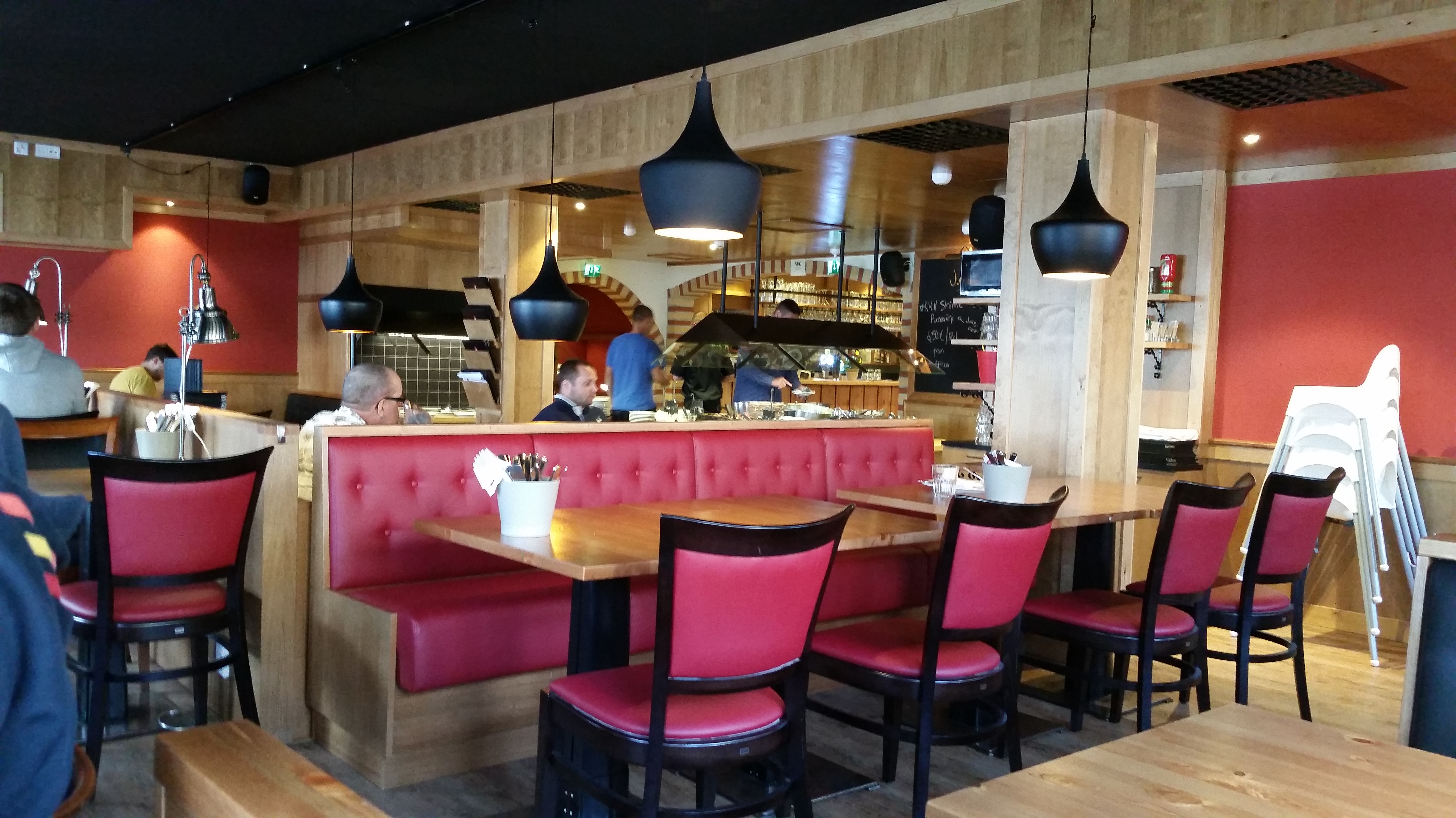 Tilauksen vastaanottava sekä aterian pöytään tarjoileva työntekijä oli asiallinen mutta leppoissa, joten henkilökunnankin puolesta voin suositella paikkaa kaikille. Paikka oli siis viihtyisä ja siisti ja värimaailma sopivan pirteä.