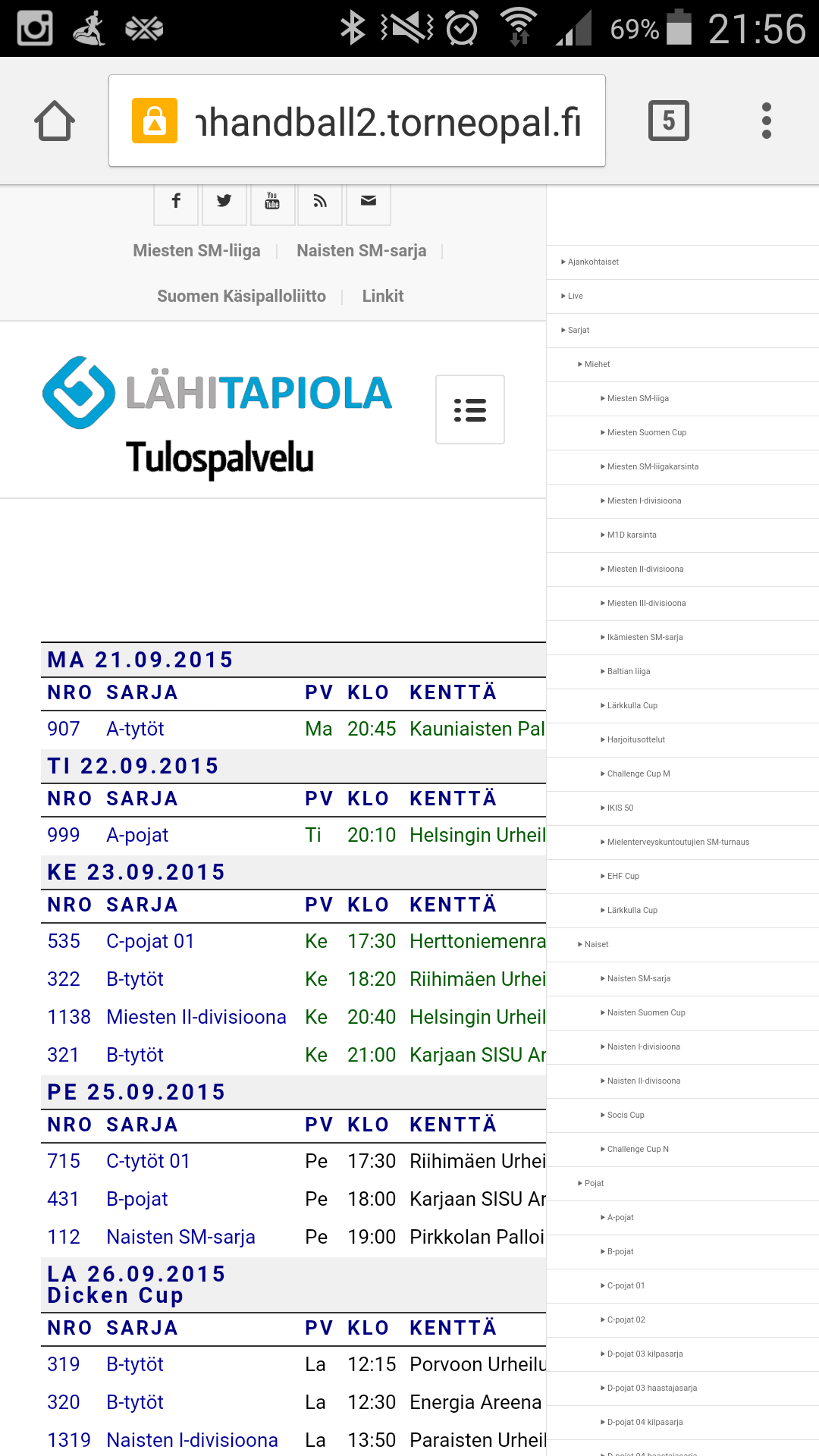 Itselläni on käytössä Samsung Galaxy S5 ja kun sieltä katson tulospalvelua on näkymä…luokaton!