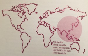 Kyllähän tämä tieto olisi saatavilla jos sitä etsisi, mutta eipä tätä tule tehtyä jos ei sitä johonkin tiettyyn tilanteeseen tarvitse. Niin iso kuin maapallo on, ja niin paljon kun tilaa löytyy, ja kuitenkin noin “pienellä” alueella on enemmän ihmisiä kun muualla, se on kyllä pysäyttävää lukea ja nähdä.