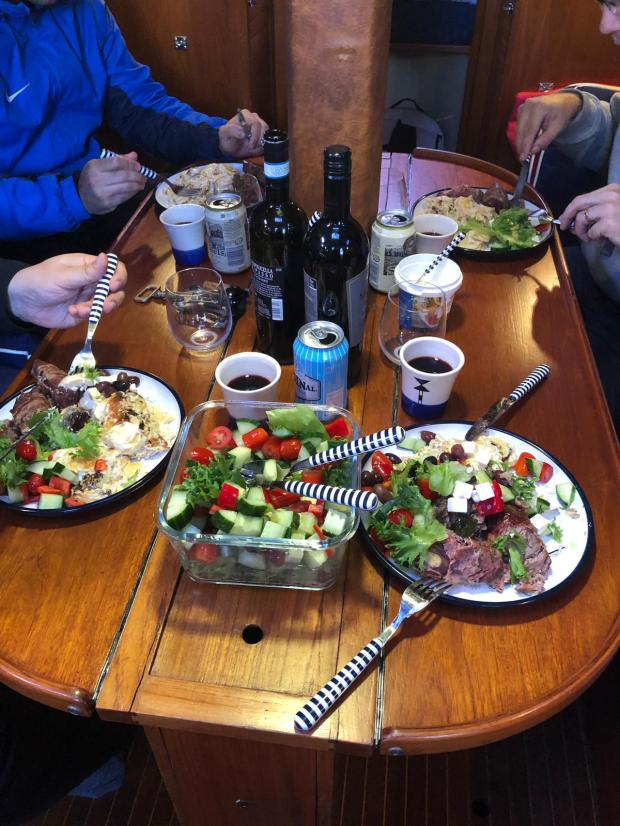 As our team manager, and captain of the boat was the only sailor, there was continues guidance on what rope to pull, or what leaver to turn, what heading to go to etc. But everything went well and everybody had fun. As we are into fall already, and the temperature was only 2 degrees Celsius, the wind felt very chilly out on the sea. We managed to avoid rain clouds, which was of course nice.