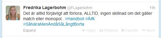 Voittajasta ei kuitenkaan ollut epäselvyyttä, ja plussaa pitää myös antaa IFK:n Annika Lindströmille joka pelasi loisto-ottelun. Ilman hänen useita paraatitorjuntoja olisi kotijoukkue takuulla rikkonut 20:nen maalin rajan sekä voineet pitää vieraiden taukonumerot huomattavasti lähempänä omaa. Lindström tienasi itselleen 2 tähteä tästä ottelusta. Kolme tähteä luovutettiin eniten maaleja tehneelle pelaajalle, eli Linda Cainbergille. Linda teki yhteensä 9, vaikka hihasta repäistynä uskoisin että 15 olisi voinut olla todellinen jos hänen ratkaisutasonsa olisi pysynyt läpi ottelun. Köket, Linda, hur kan du sätta bollen i köket från öppen kastplats? 😀